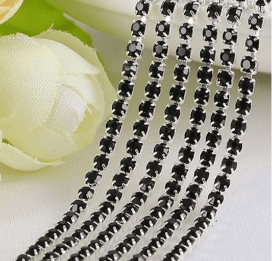Ss8 Gothic Black Stone, on Darkest BLACK, Coloured Metal Rhinestone Chain (Sold in 36")