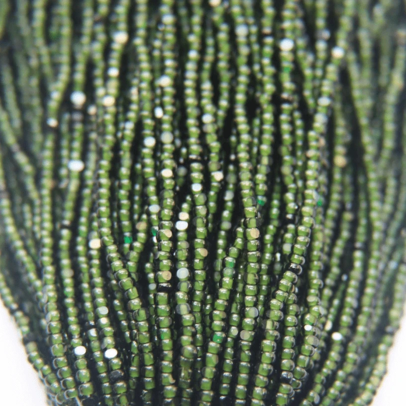11/0 Charlotte Cut Seed Bead- White Colour Lined Olivine Dark Green *10g Hank*
