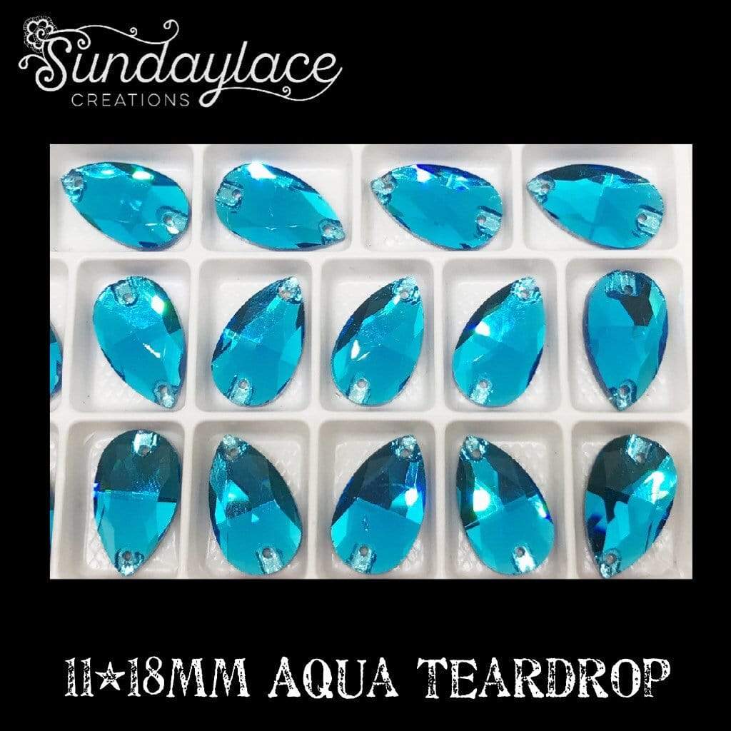11*18mm or 13*22mm Aqua Teardrop, Sew on, Glass gem