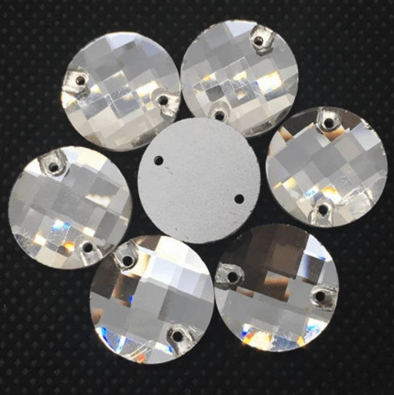 14mm Clear Checkered Rivoli, Sew on, Glass Gems (Sold in Pair)