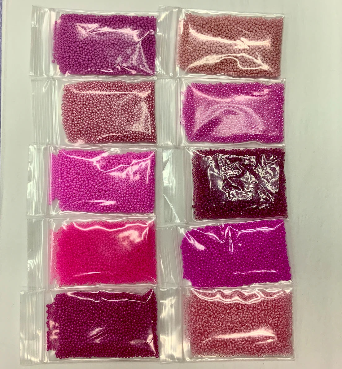 A curated mix of 10/0 Preciosa seed beads in pink and purple tones that bring your designs to life ✨