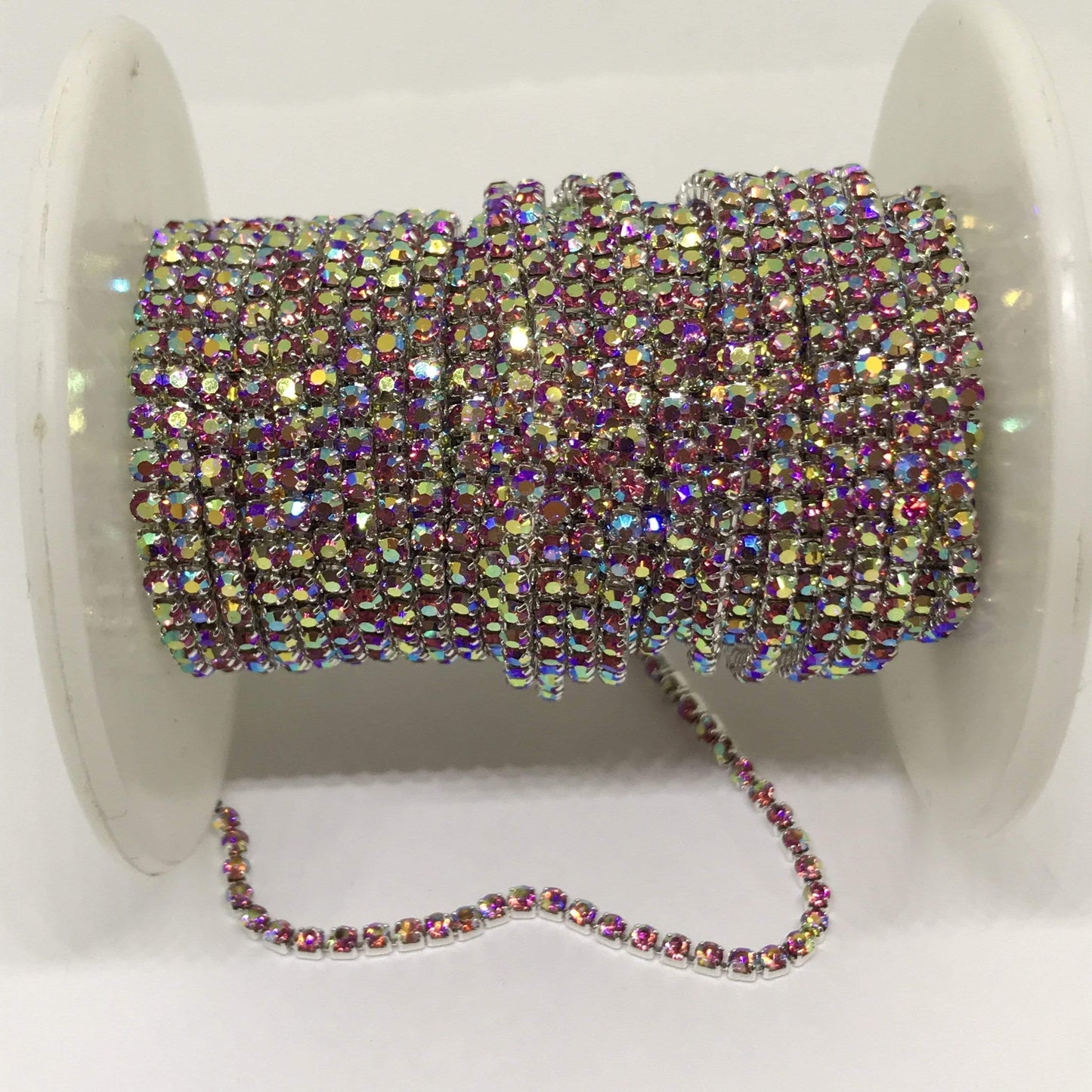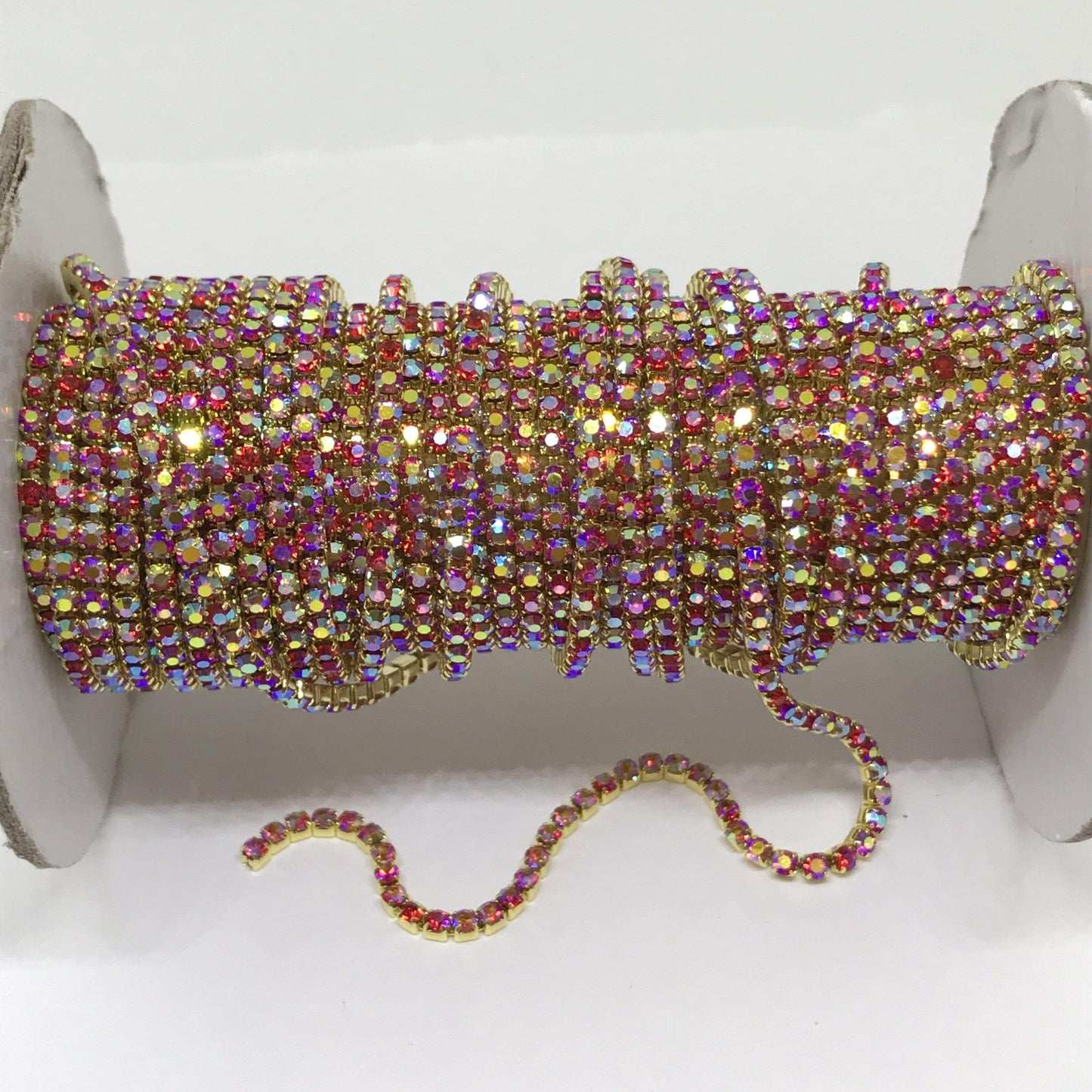 Ss6 Red AB, Rhinestone with Silver/Gold Chain, Rhinestone Metal Chain
