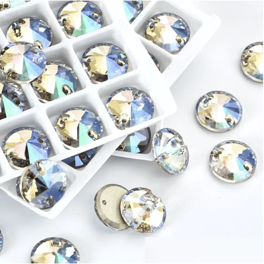 10mm Moonlight Rivoli, Grade AAAA, Sew on, Fancy Glass Gem (Sold in Pair)