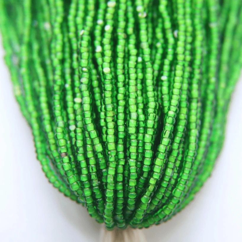 11/0 Charlotte Cut Seed Bead- White Colour Lined Neon Light Green *10g Hank*