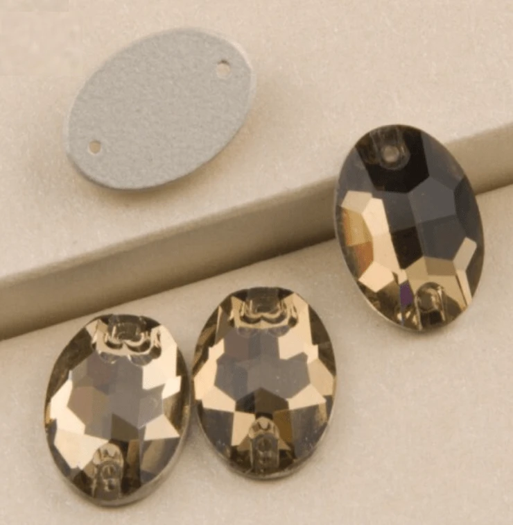 11*16mm Light Smoked Topaz *Brown* OVAL, Sew on, Fancy Glass Gem