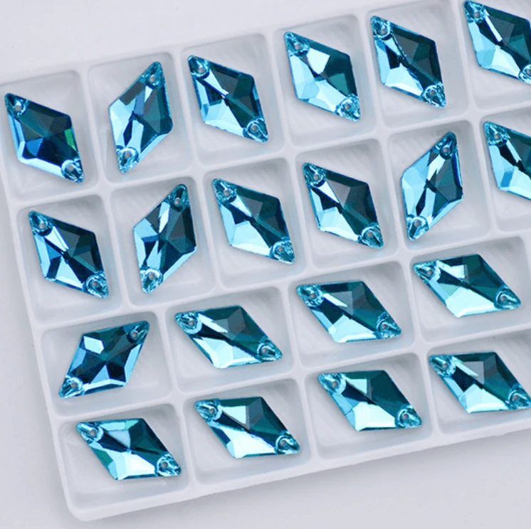 11*19mm Aqua Blue Rhombus Diamond Shaped, Sew on, Glass Gem