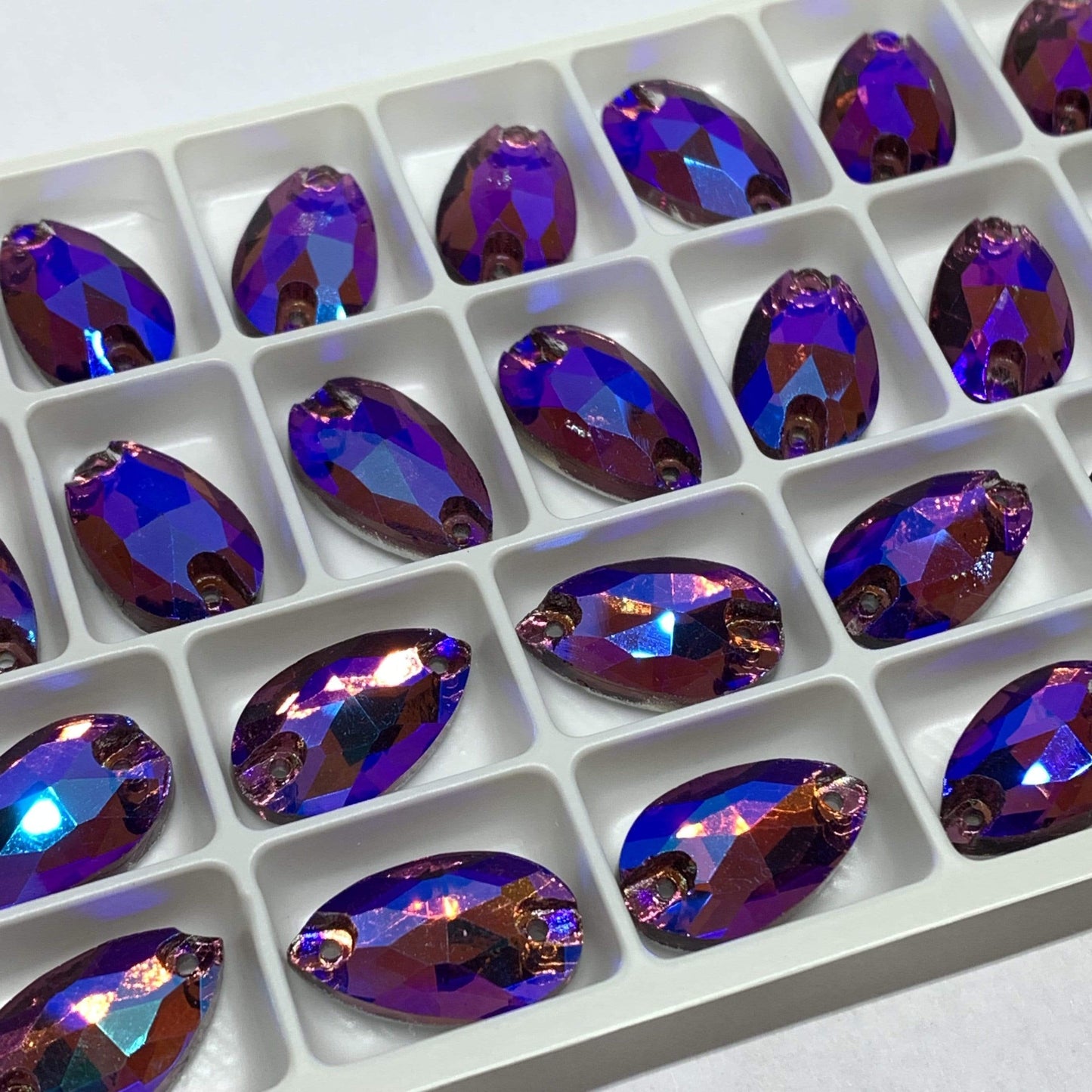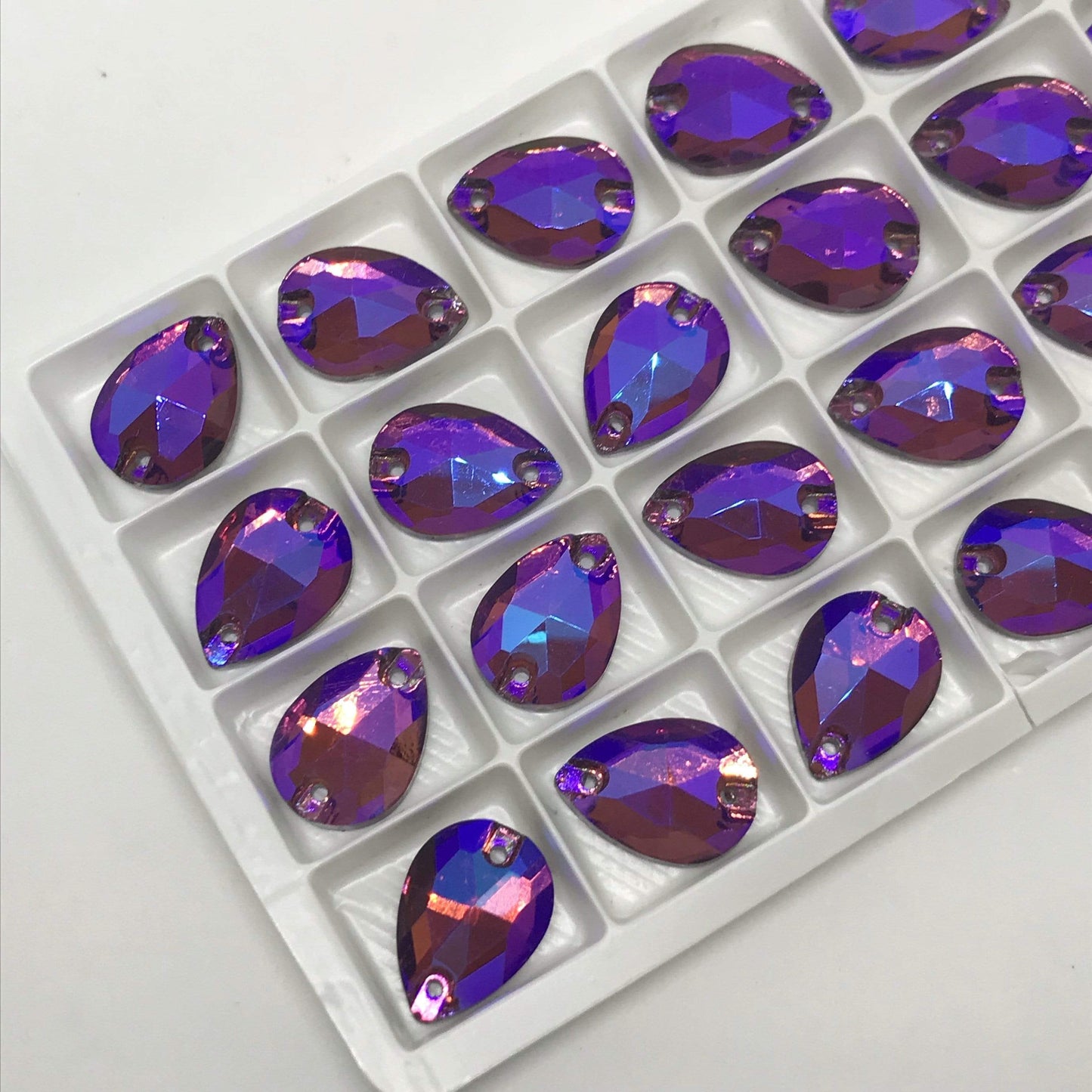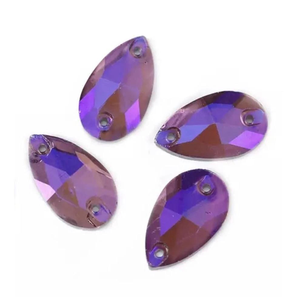 11*18mm Light Amethyst/Burgundy AB finish, Teardrop shaped, Sew on, Glass Gem (Sold in Pair)
