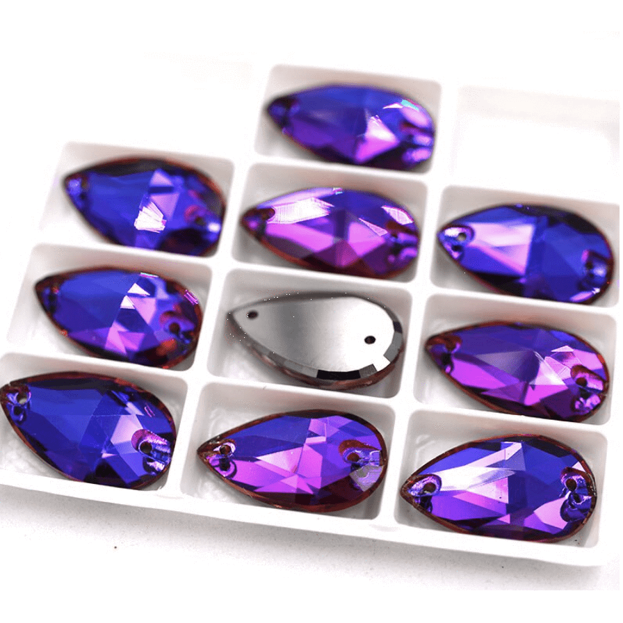 17*28mm Pink-Sapphire-Purple Flame, Sew on, Black Bottom, *High Quality* Fancy Glass Gems (Sold in Pair)