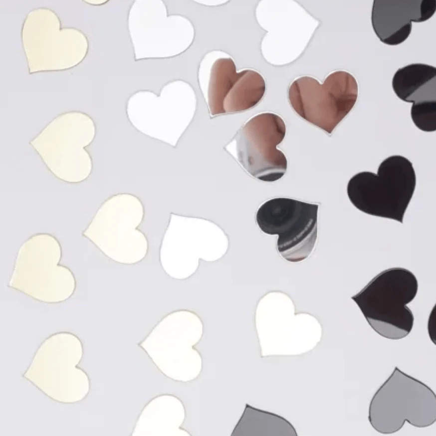 20mm Gold, Silver, Black Heart Mirror Sticker, Mirror Resin Gem (Sold in Pair)