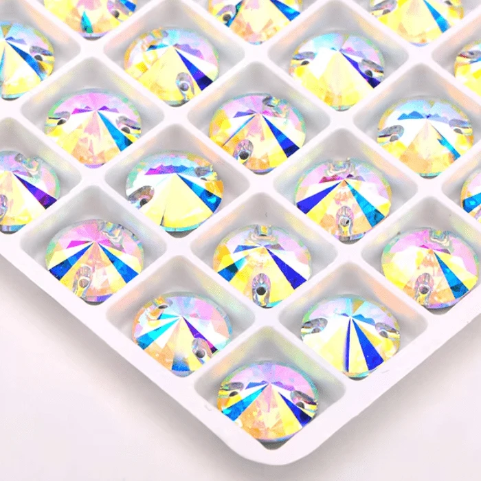 8mm AB Pointed Rivoli, Sew on, Fancy Glass Gem *New* (Sold in Pair)