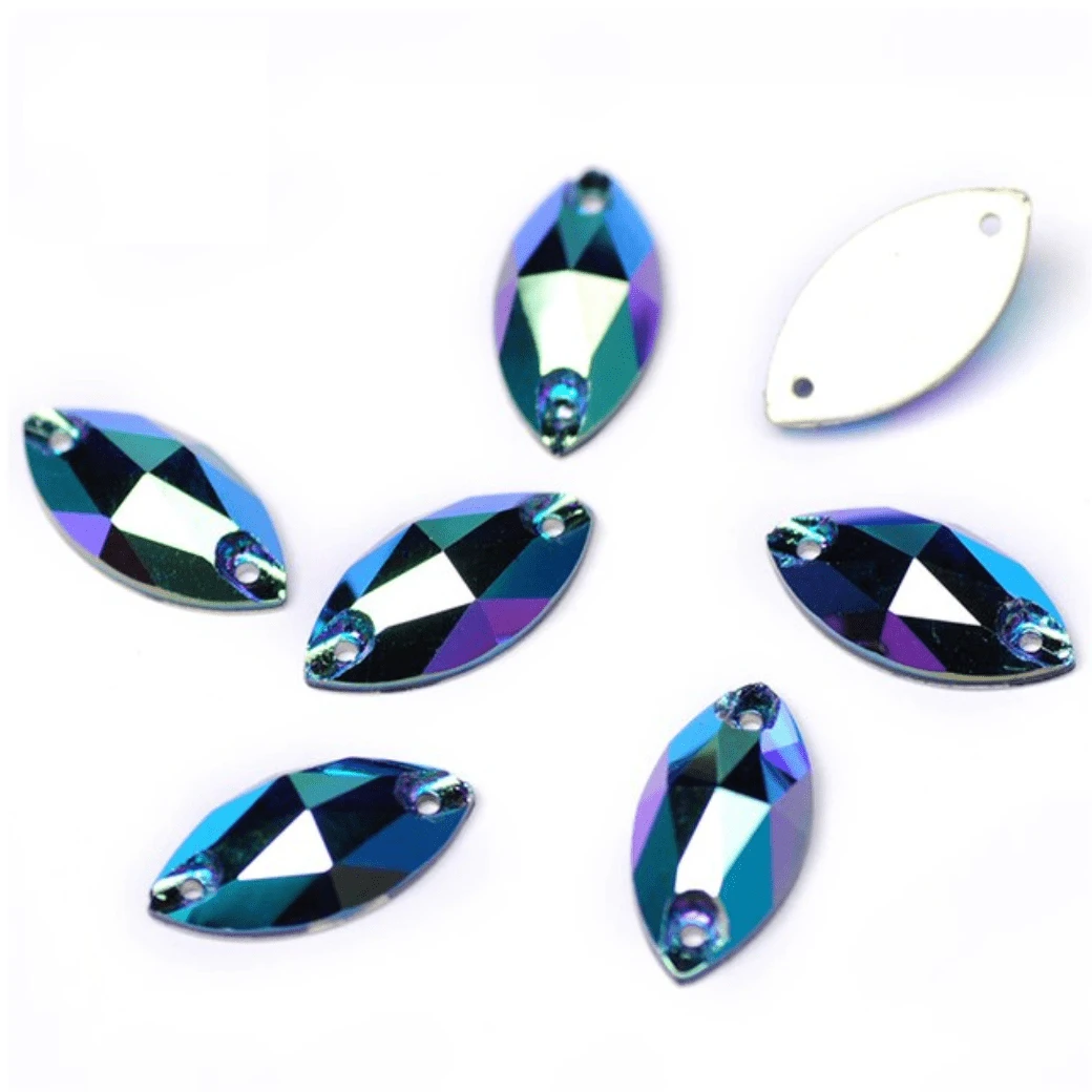 9*18mm Dark Cobalt Blue AB Navette *High Quality*, Sew on, Fancy Glass Gems