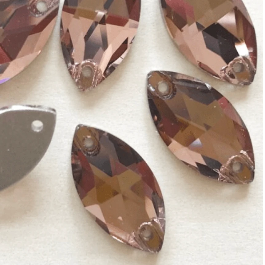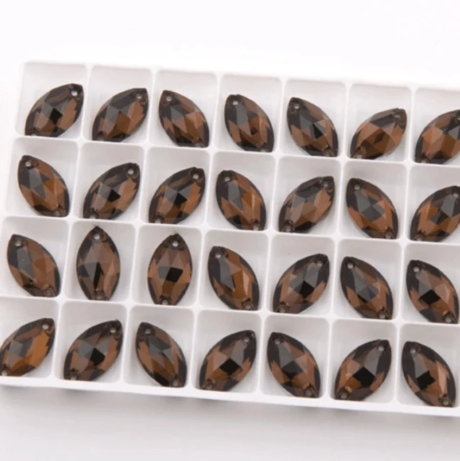 9*18mm Smokey Brown Topaz Navette, Sew on, Fancy Glass Gem
