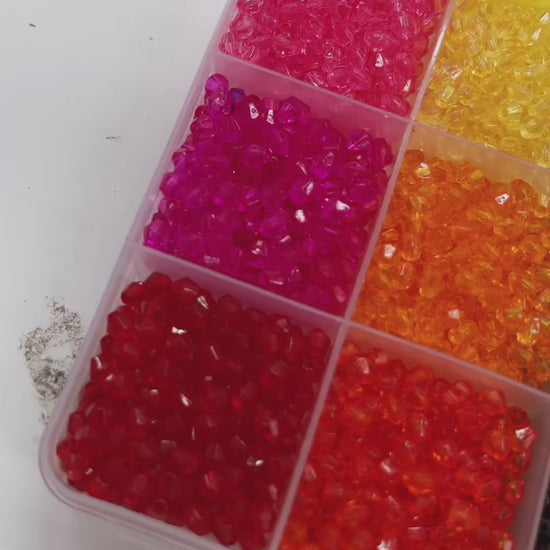 Multicolour Rainbow Kit - 24 Colours of 4mm Transparent Dyed Bicone Beads, Acrylic Bicone Beads