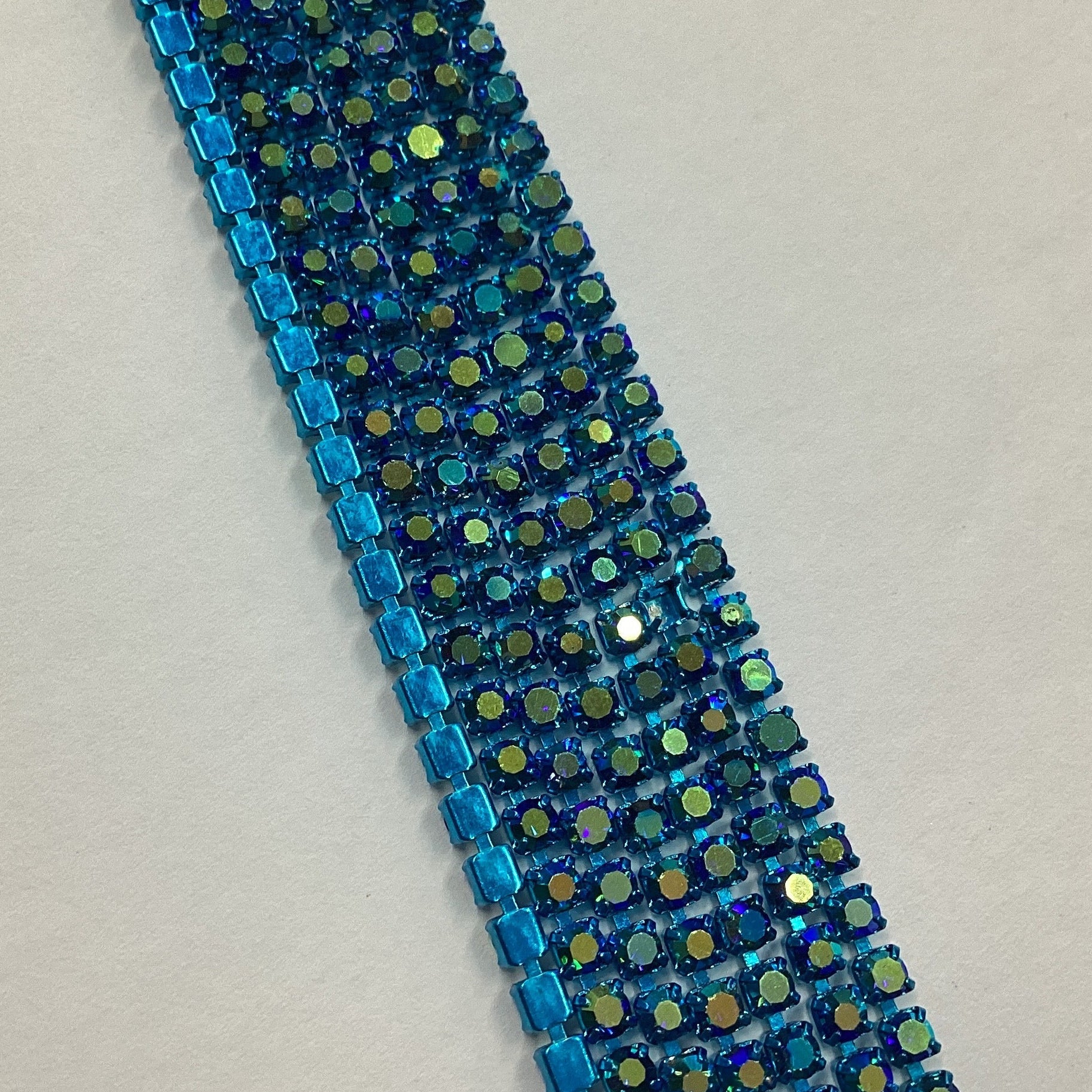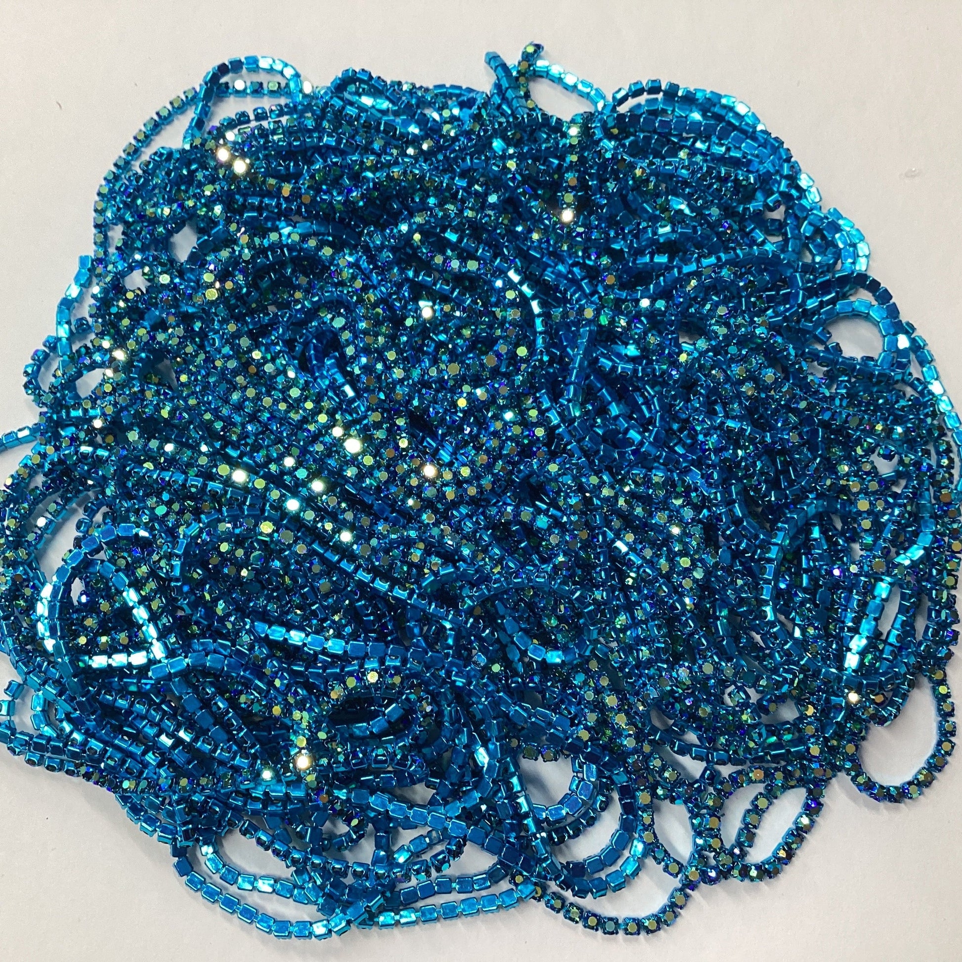 Ss6 Dark Aqua Blue AB Stone on Blue Coloured Metal Rhinestone Chain (Sold in 36") (Copy)