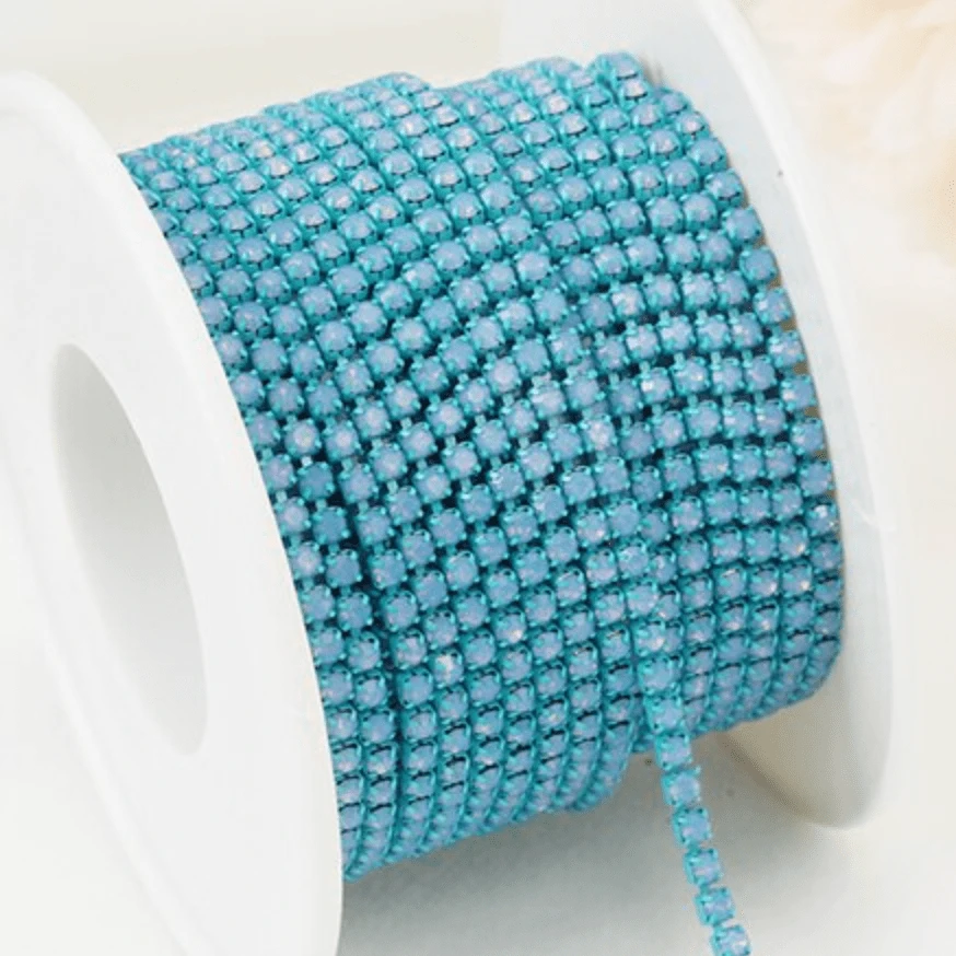 Ss6 Pink OPAL Stone on Blue *periwinkle colour, Colour Metal Rhinestone Chain